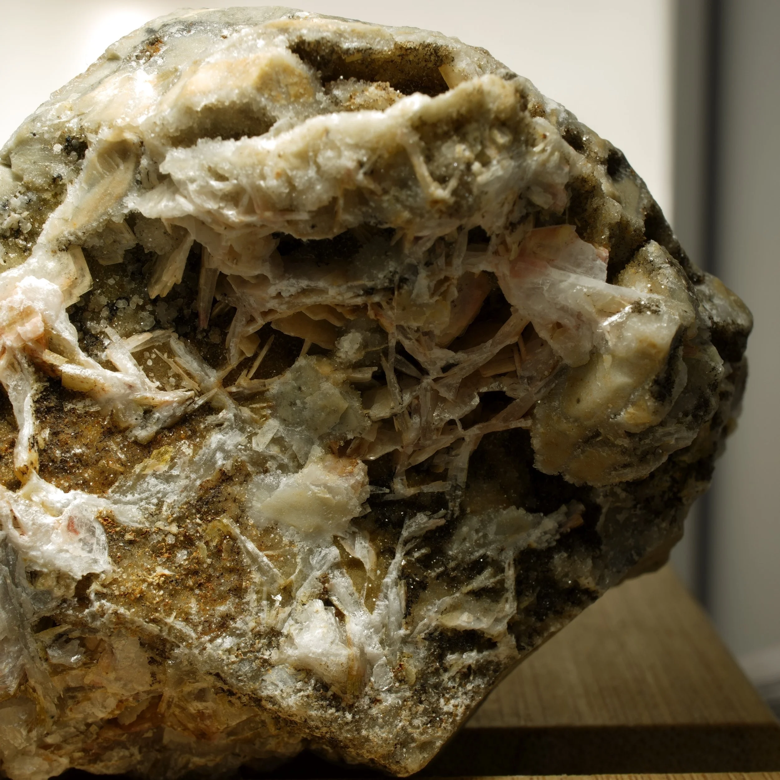 Barite, known for its high density and distinctive crystal habits, pairs perfectly with the glistening quartz growths, making this a unique collector’s piece. The secondary oxidation gives the rock a rustic patina, enhancing its natural appeal.